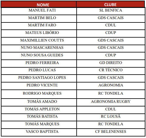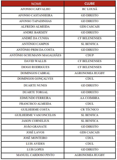 4.ª Convocatória Seleção Nacional de XV Masculina