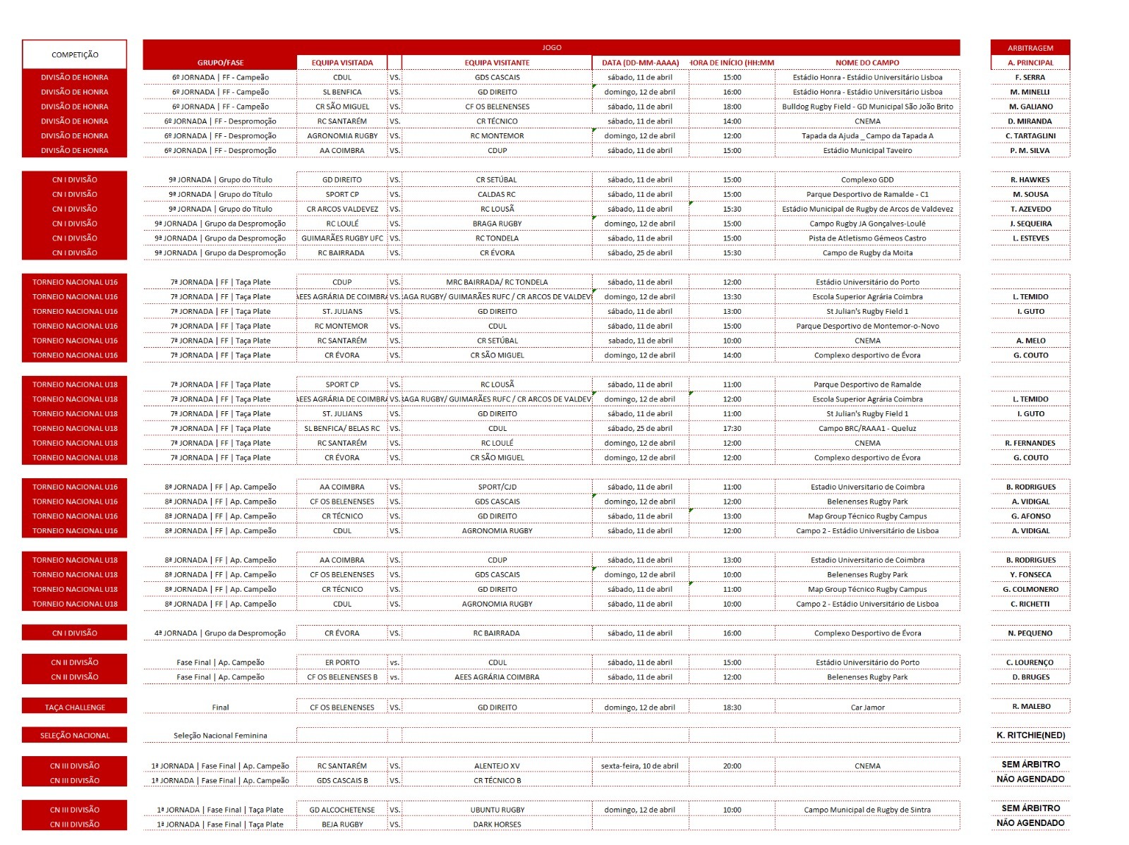 Calendário CN: 11 & 12 de Abril